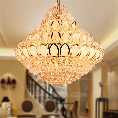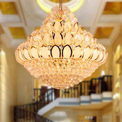 复式楼客厅大吊灯奢华会所酒店工程水晶灯欧式别墅大厅金色吊灯