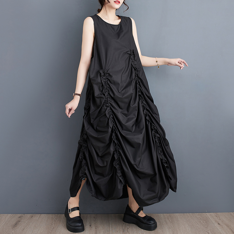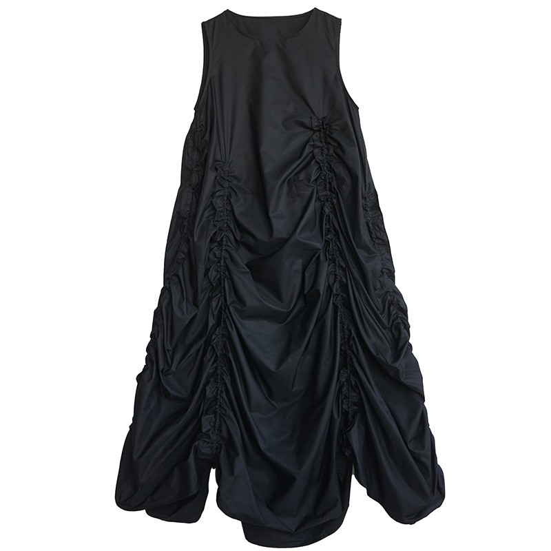折扣夏装新款时尚连衣裙圆领无袖背心气质显瘦抽褶宽松连衣裙子