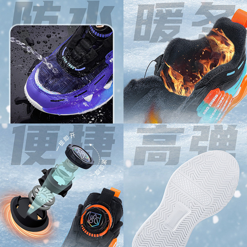 ABC SHIELD男童鞋子儿童棉鞋加绒保暖冬季款男孩时尚纽扣百搭二棉
