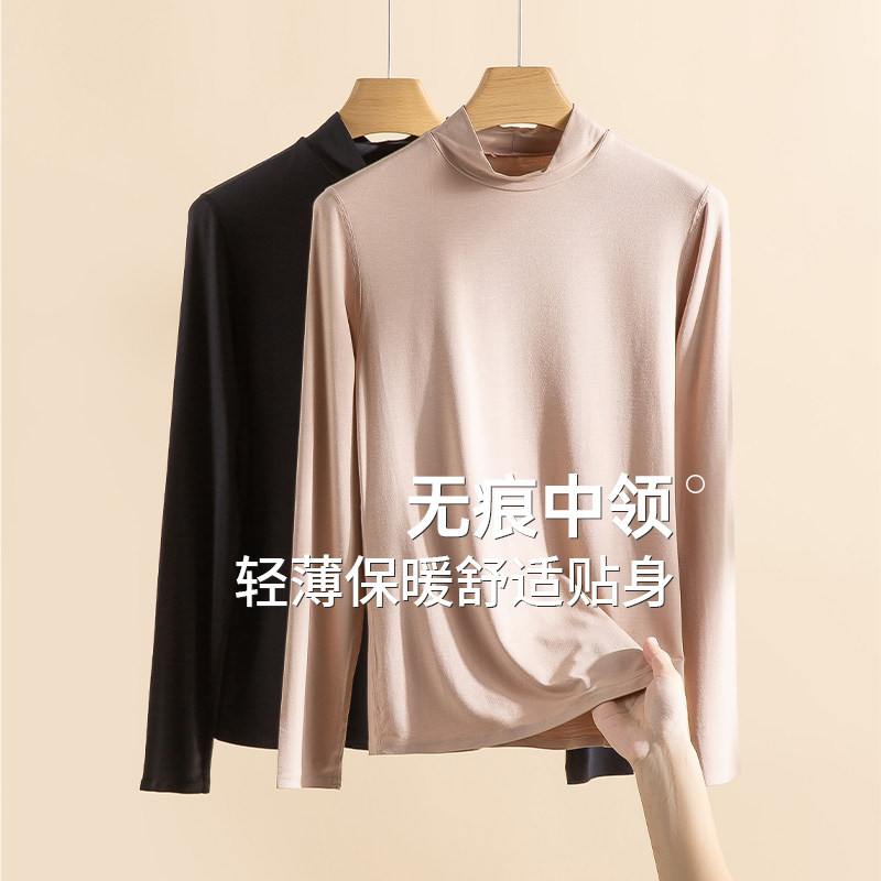 猫人莫代尔无痕超薄款男士女士半高领中领上衣打底衫秋衣保暖内衣