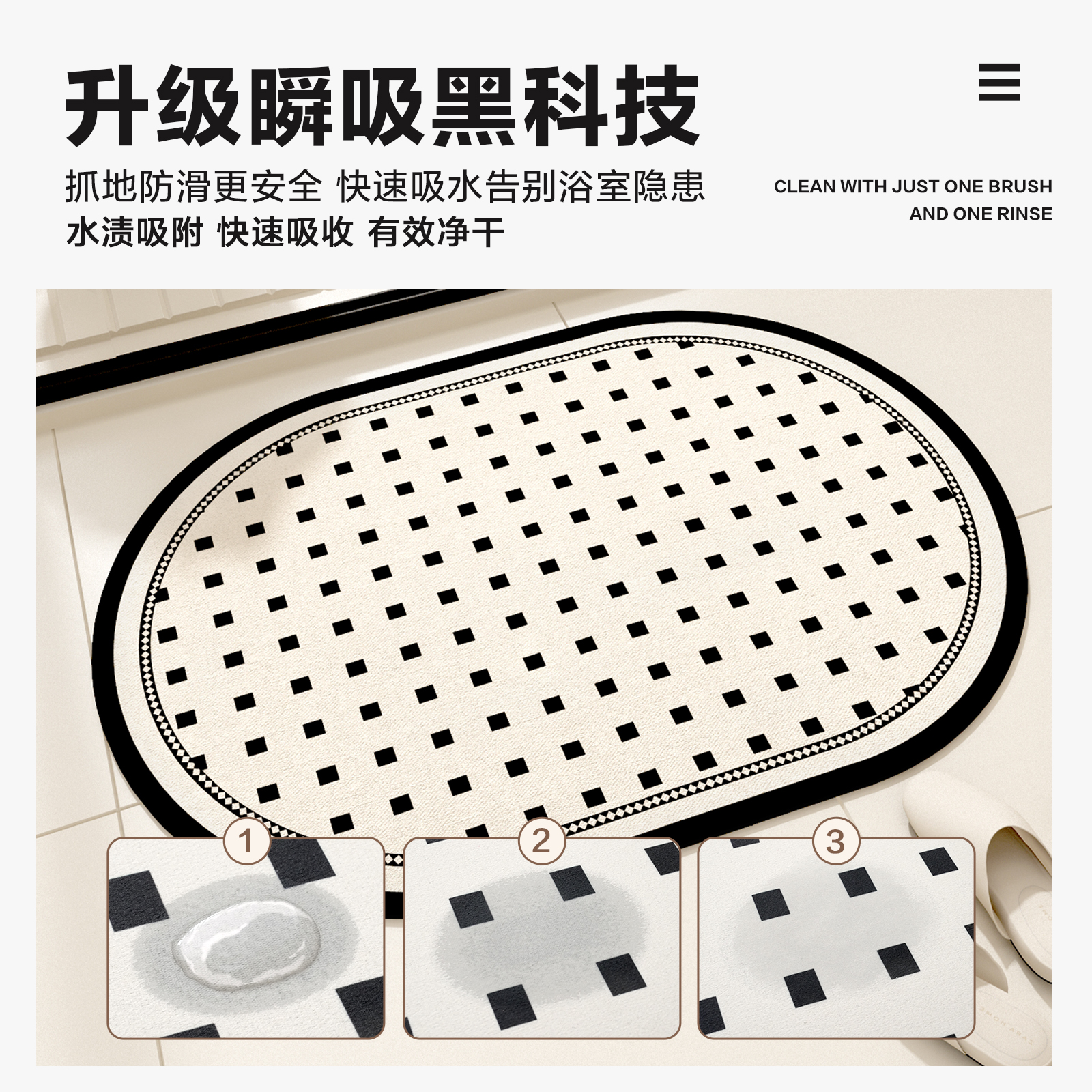 国风黑色l型浴室地垫卫生间卫浴进门转角中古风脚垫吸水防滑地毯