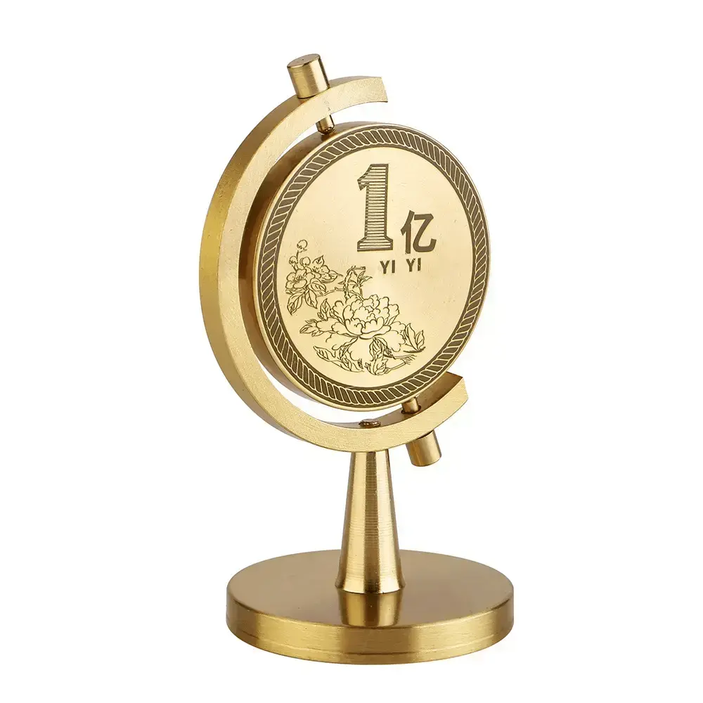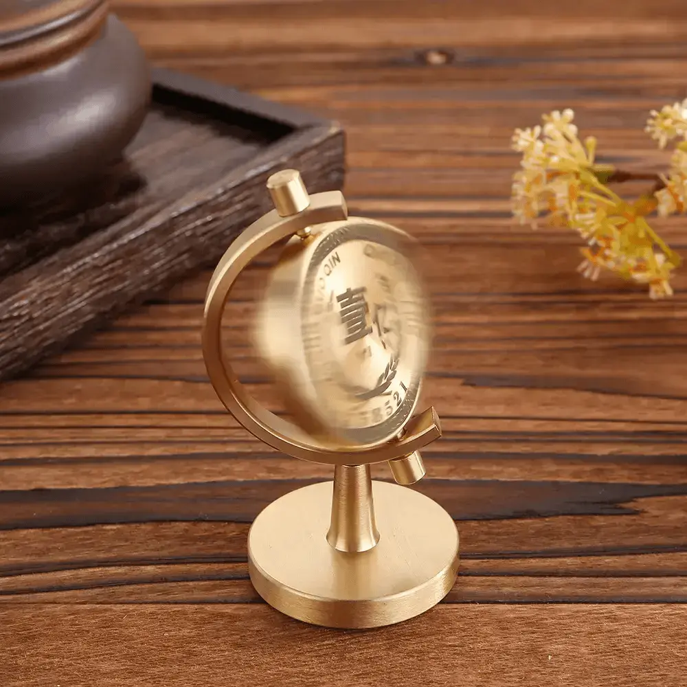 【黄铜一亿小目标】旋转地球仪转转车载办公桌摆件解压创意礼品L