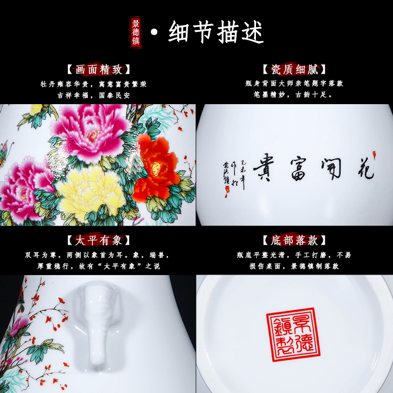 景德镇陶瓷器花瓶摆件客厅插花薄胎瓷中式博古架酒柜装饰品双耳瓶