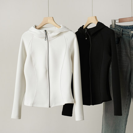 女士空气层连帽外套 瑜伽服跑步服修身款上衣薄款 短开衫 春秋款