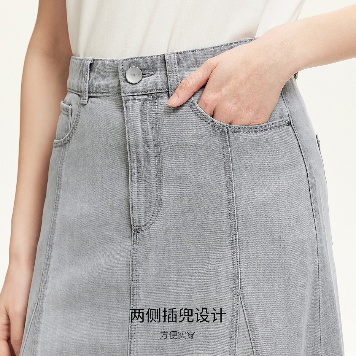 v区绫致Vero Moda半身裙2025夏季新款含棉莱赛尔做旧高腰A字裙