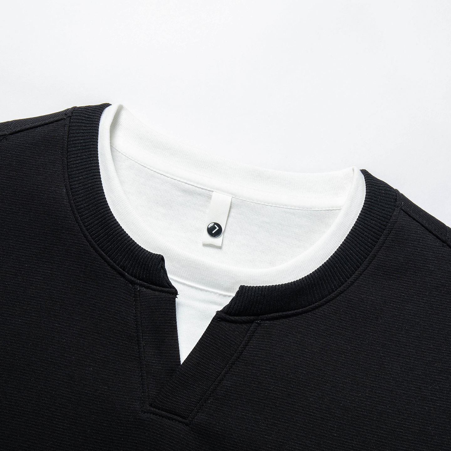 假两件棉长袖T恤男春秋季潮流帅气卫衣韩系V领拼接打底衫早秋上衣