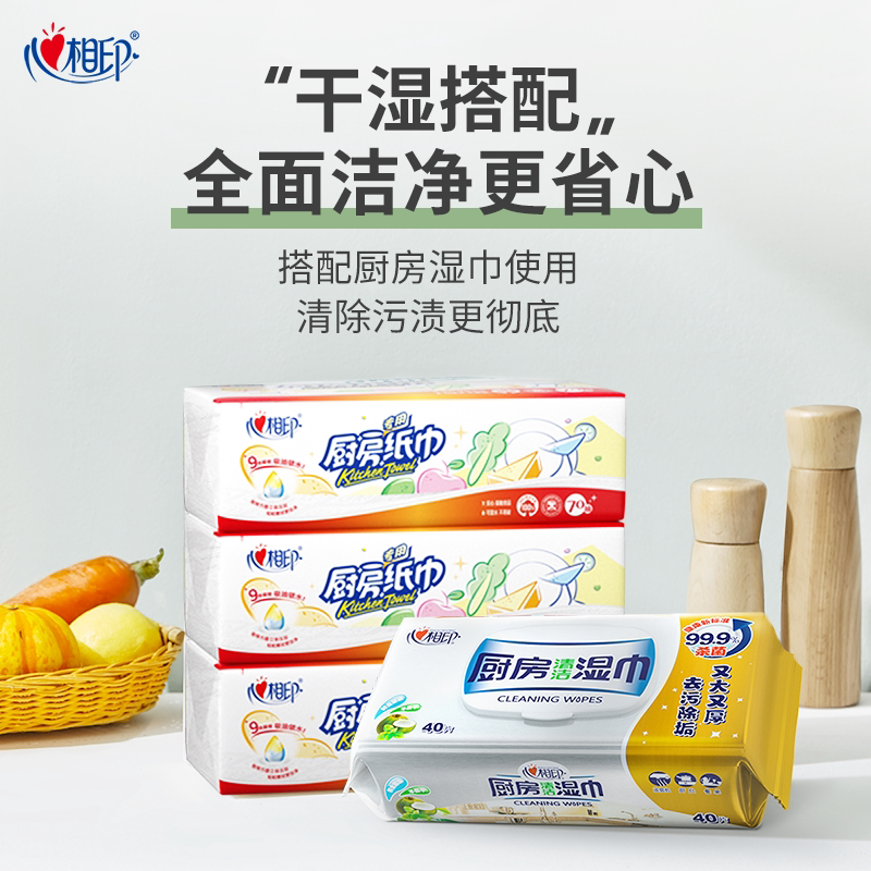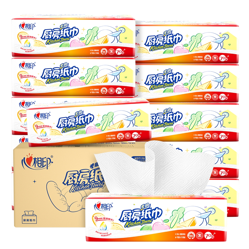 心相印厨房用抽纸70抽12包家用整箱厨房专用吸油吸水纸巾懒人抹布