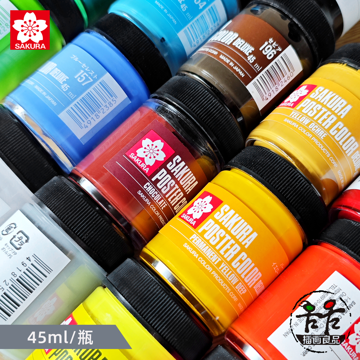 日本樱花脱胶水粉45ml设计广告色60色自选美术艺考不透明金银黑白