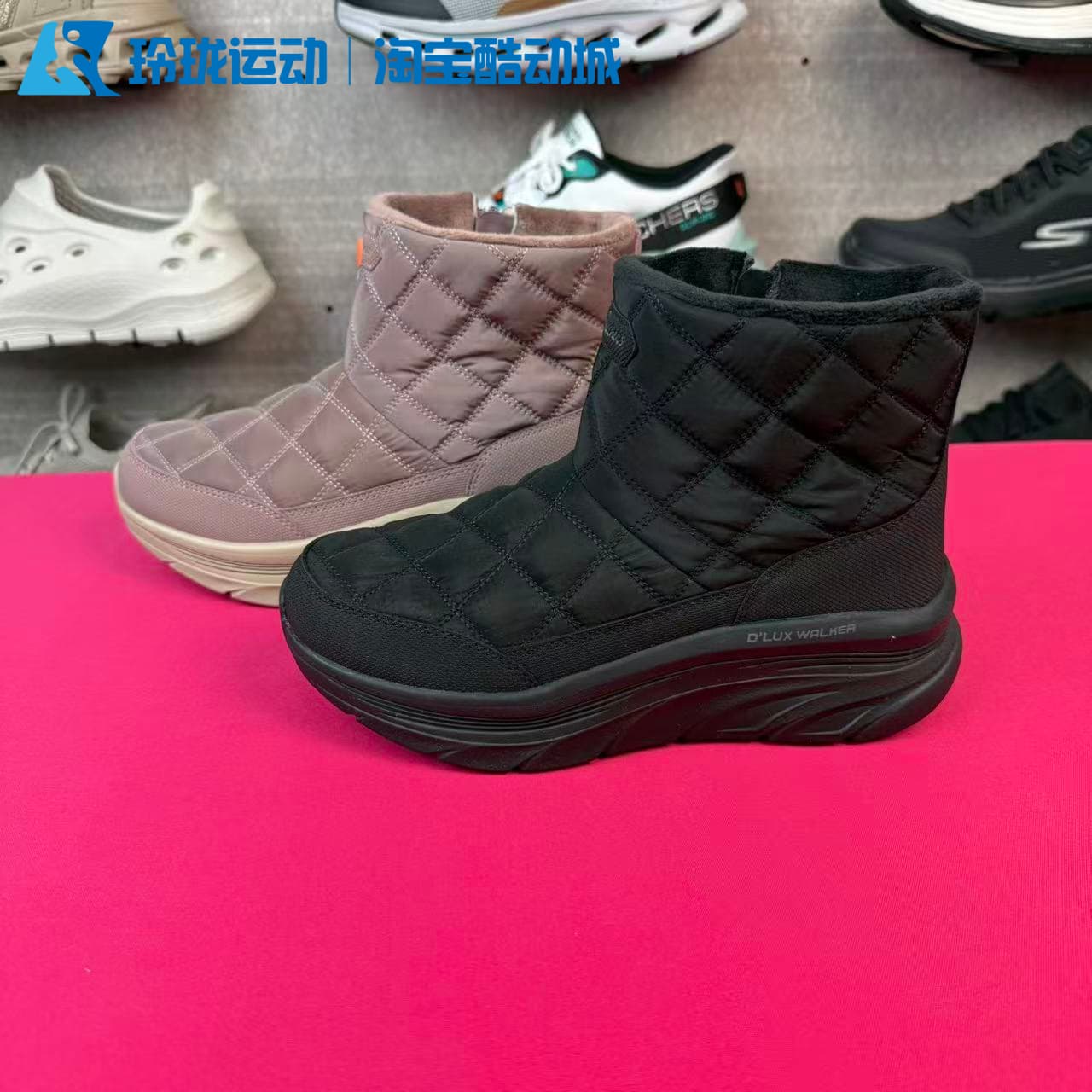 斯凯奇保暖女士一脚蹬加绒雪地靴