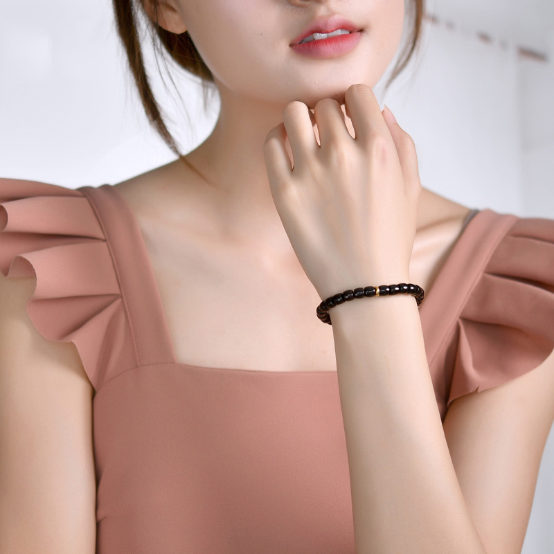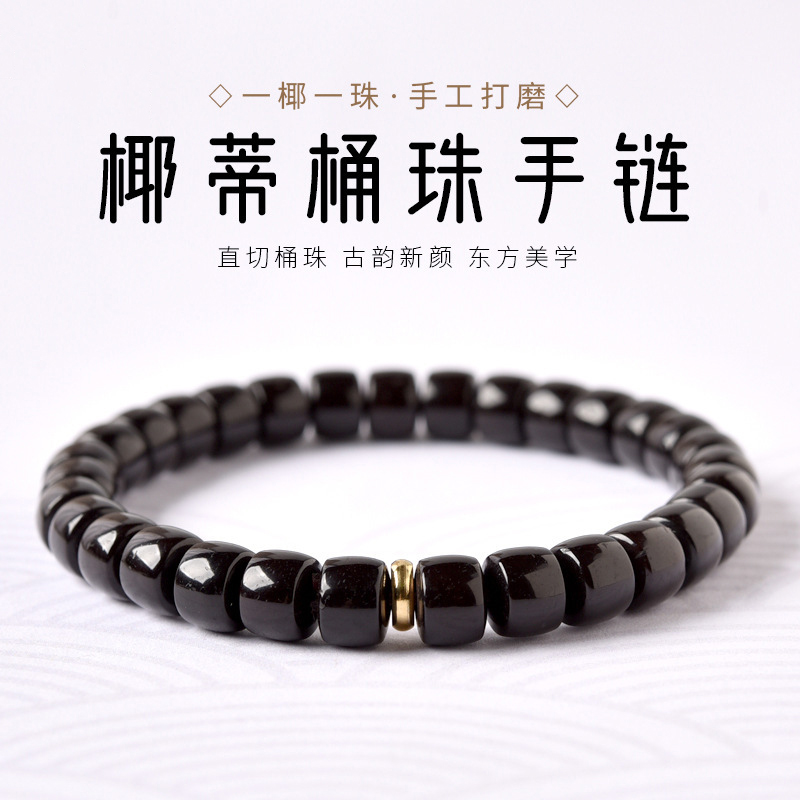 印尼老料椰蒂手串男女士原生态直切薄切药片跑环佛珠配饰串珠手链