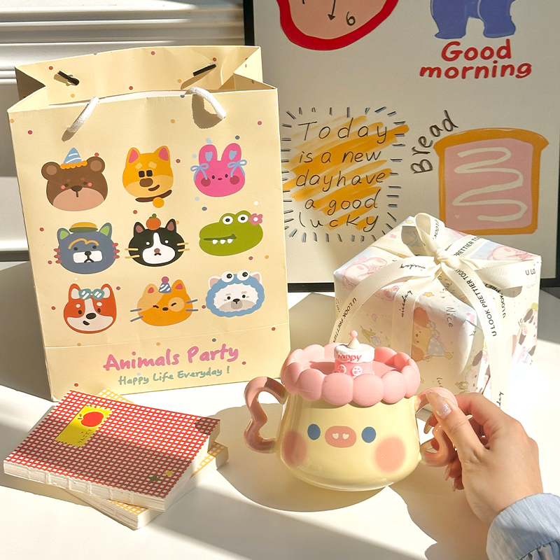 创意可爱小猪生日礼物高颜值伴手礼陶瓷马克杯送闺蜜水杯子礼盒装