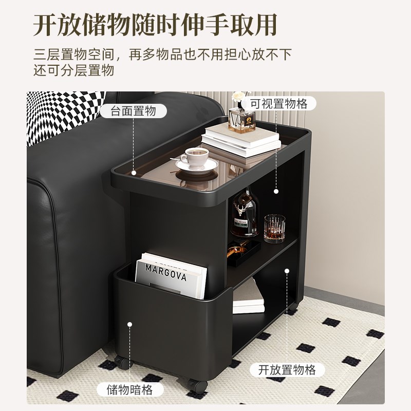 可移动茶几沙发边几小户型家用客厅小推车带轮置物架铁艺床头边柜