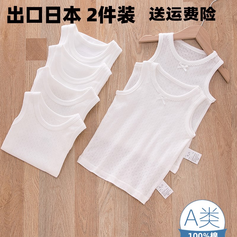 2件儿童纯白背心纯棉网眼宝宝夏季薄款男童女童无袖打底汗衫外穿