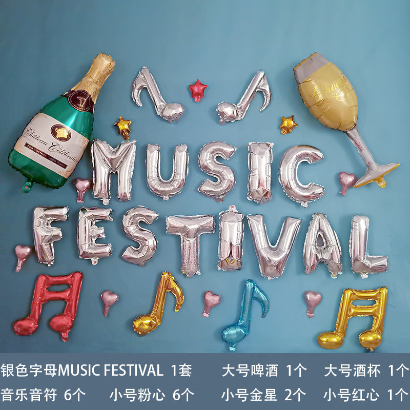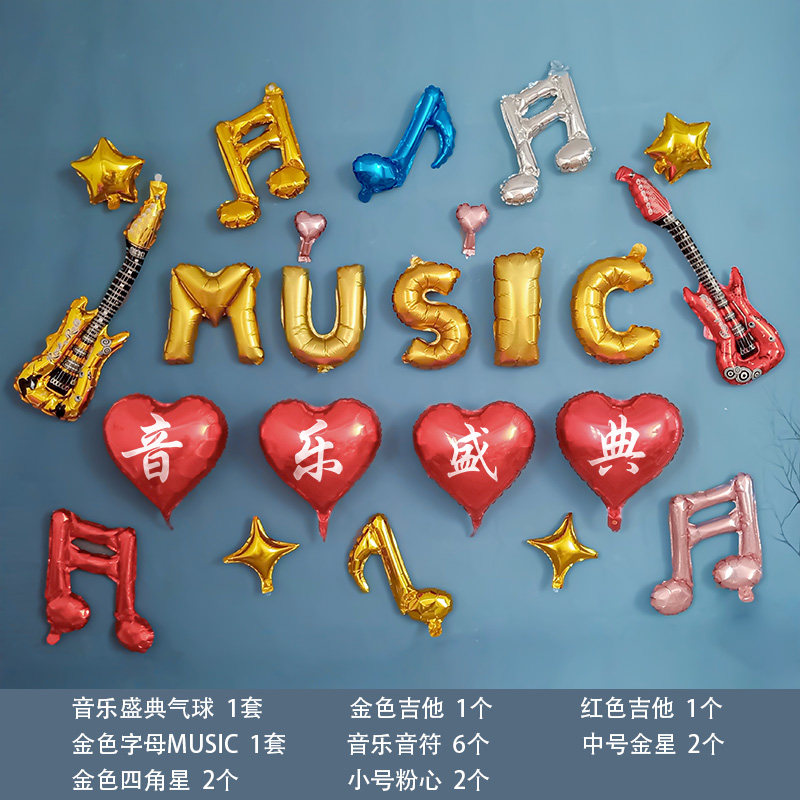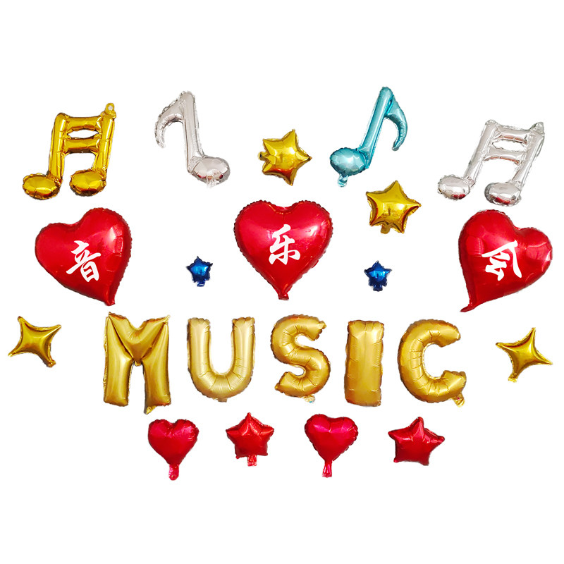 音符气球音乐会场装饰印字母音乐教室布置创意趴体派对喜庆背景布