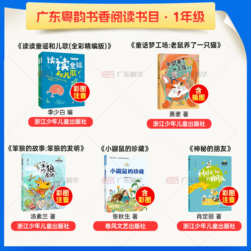 2026广东粤韵书香一年级寒假阅读书目 读读童谣和儿歌老鼠养了一只猫笨狼的故事笨狼的发明神秘的朋友小巴掌童话小鼹鼠的珍藏xy