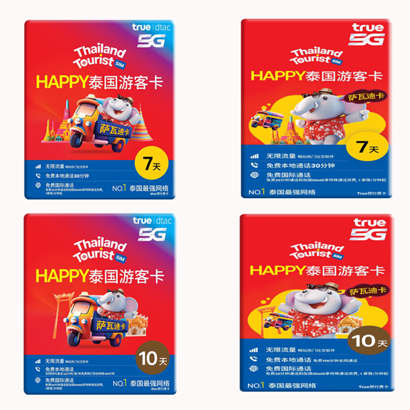 泰国电话卡Happy卡可选无限4G/5G流量旅游手机上网卡7/10天
