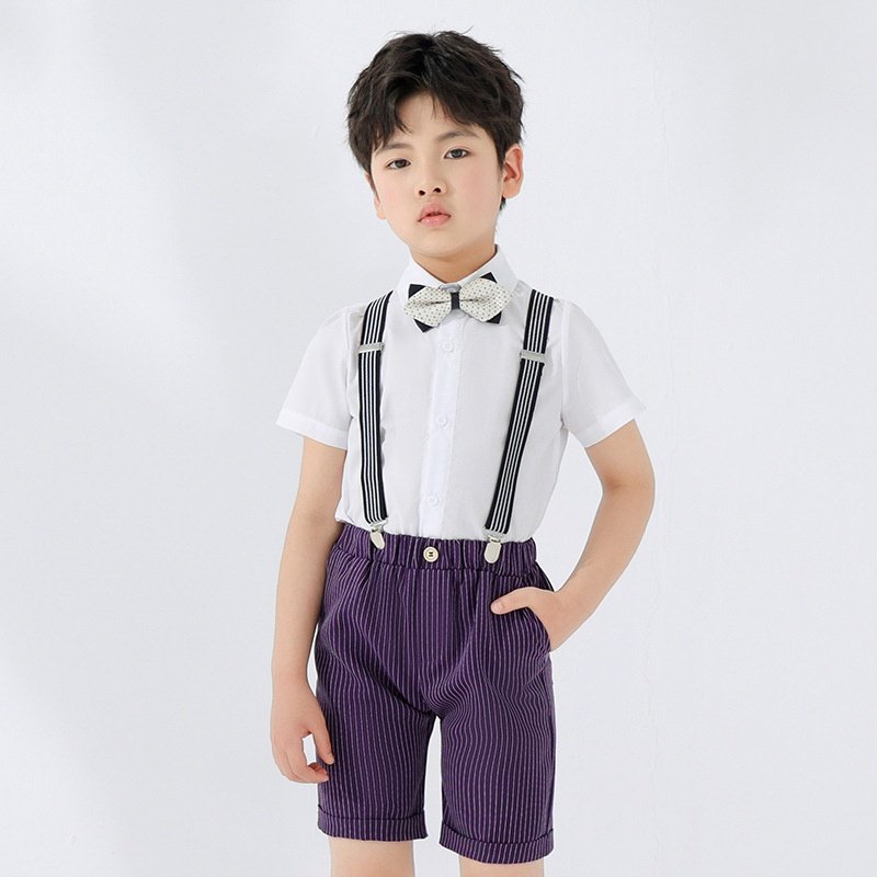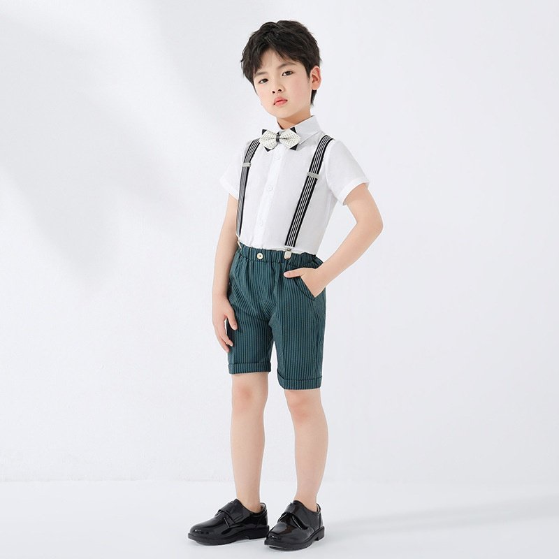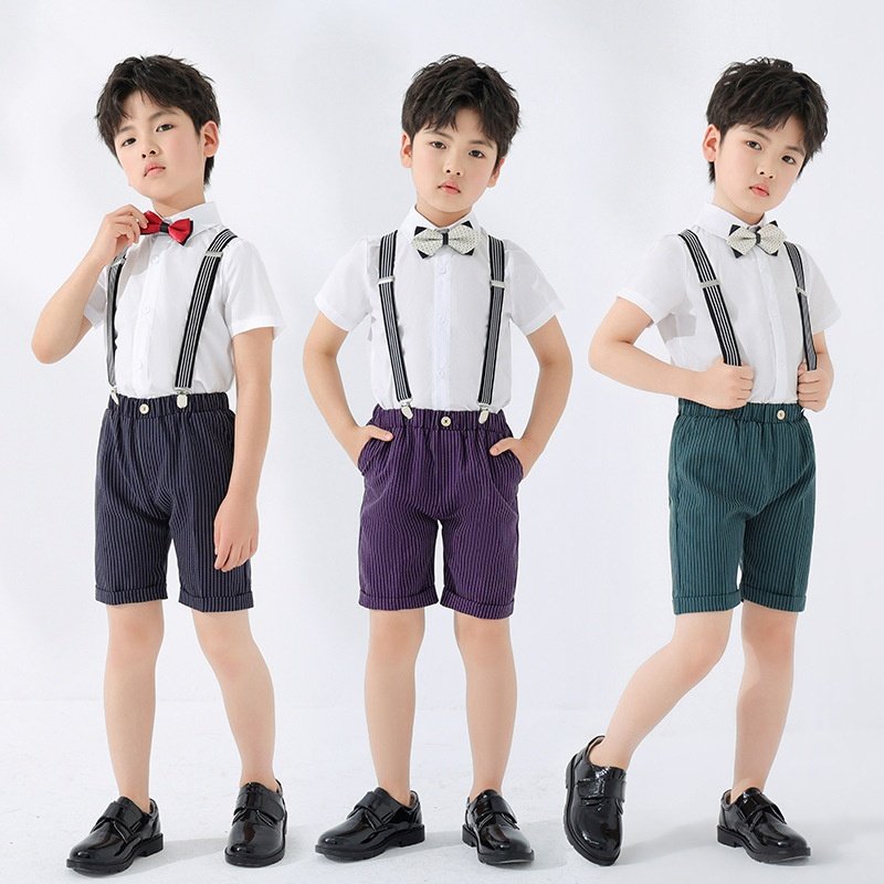 男童背带裤套装春夏季新款韩版短袖中小童演出服六一主持合唱礼服