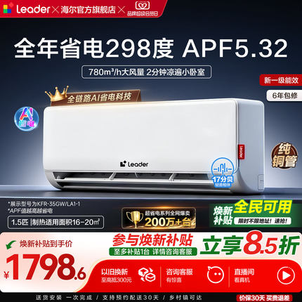 海尔出品统帅超省电冷暖空调1.5匹卧室节能变频挂机一级能效35La1