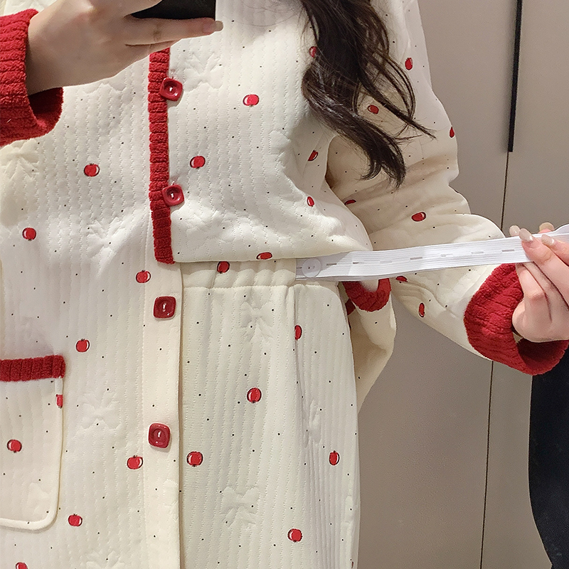 婧麒月子服秋冬产后空气棉加厚孕妇睡衣哺乳产妇待产喂奶家居服