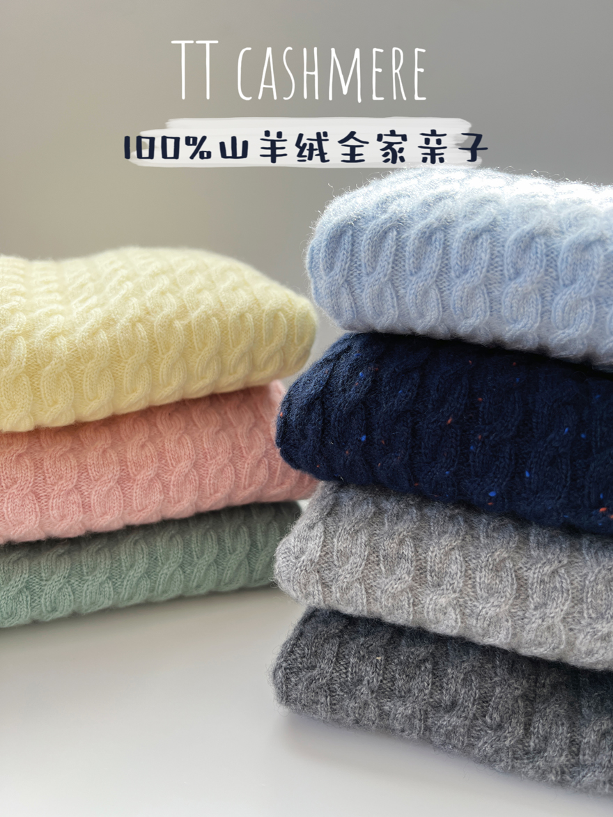TTcashmere男女儿童纯羊绒基础款圆领麻花全家亲子柔软贴身羊绒衫