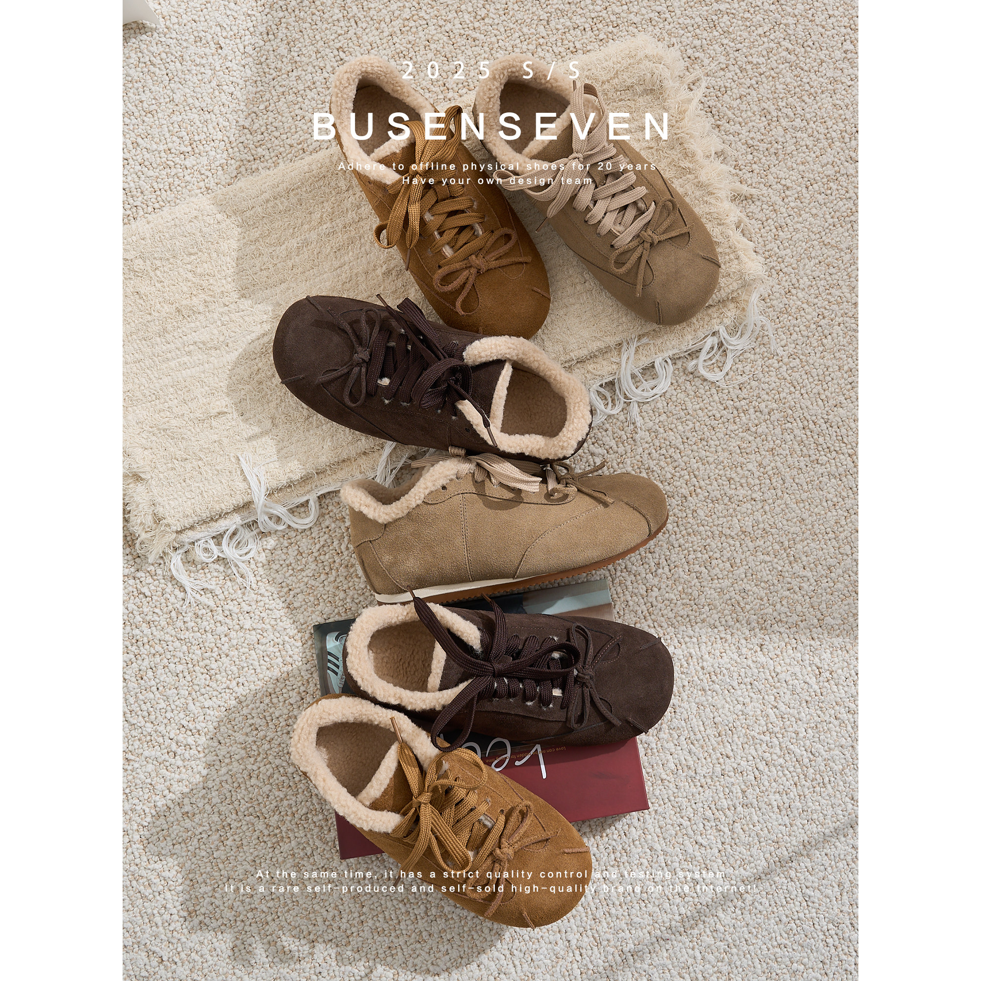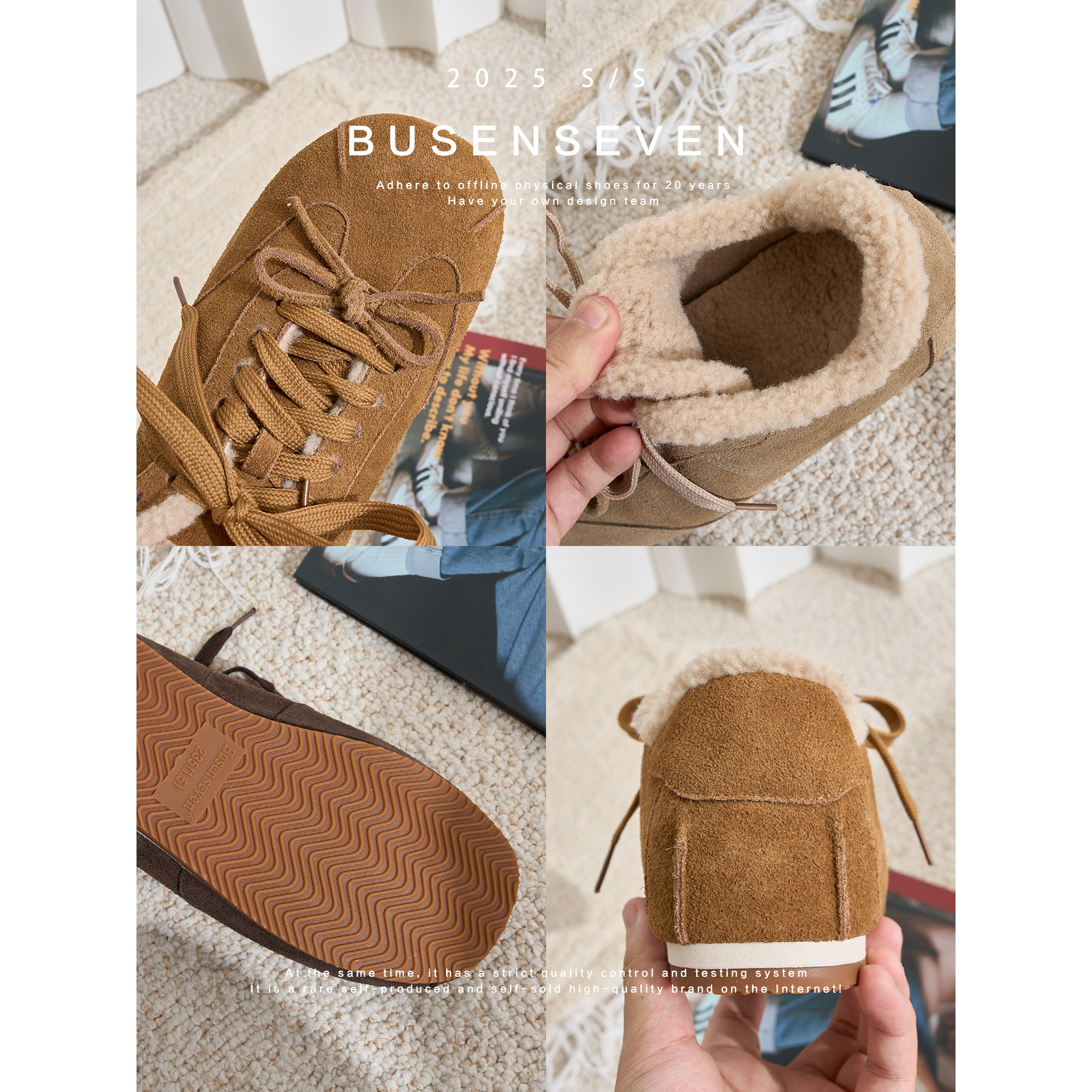 柒步森林翻毛牛皮内增高加绒毛毛棉系带德训鞋子女雪地单鞋冬新款