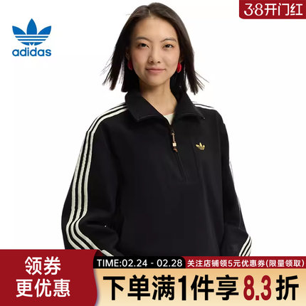 adidas阿迪达斯三叶草春季女子CNY运动休闲卫衣翻领套衫KT3135