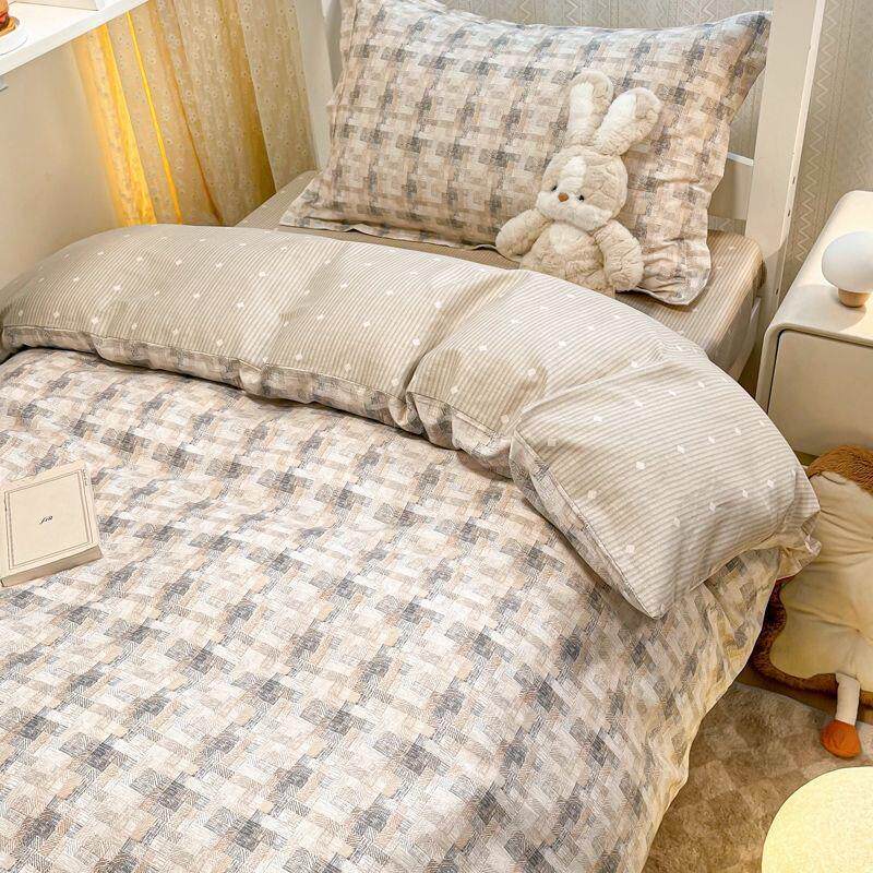 北欧风60S全棉床单4件套学生宿舍被套三件套百分百纯棉四件套男生