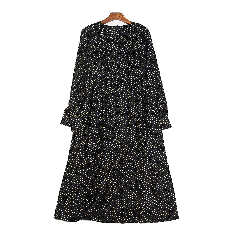 韩版精品雪纺波点长袖连衣裙女H84011春秋季宽松收腰显瘦垂感长裙