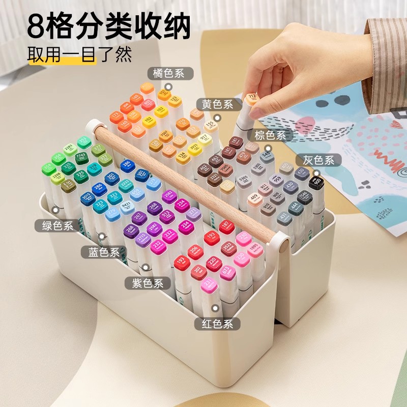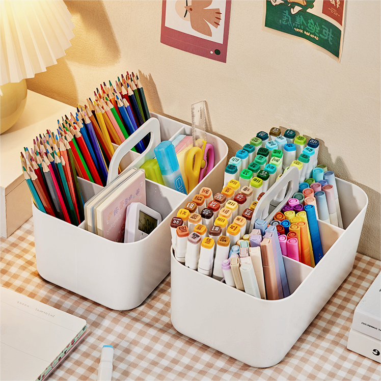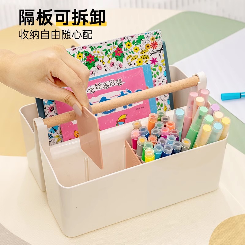 马克笔笔筒大容量画笔收纳盒一体多功能书桌面学生画画铅笔提手筐