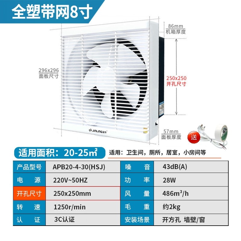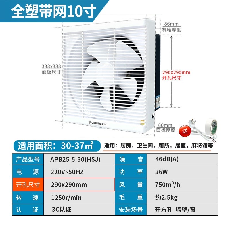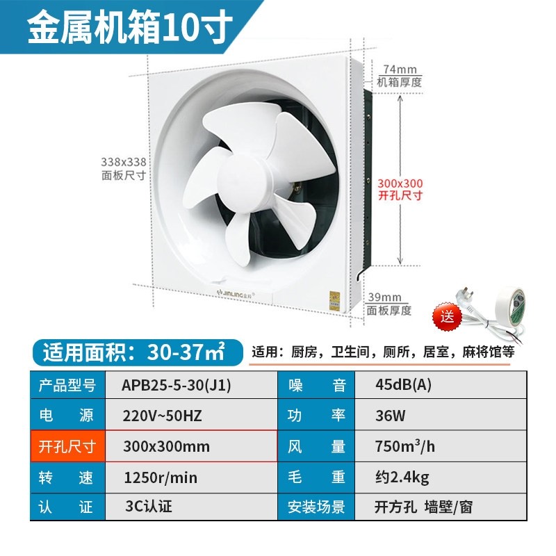 金羚排气扇10寸排气扇30x30卫生扇厨房家用换气扇强力间排风