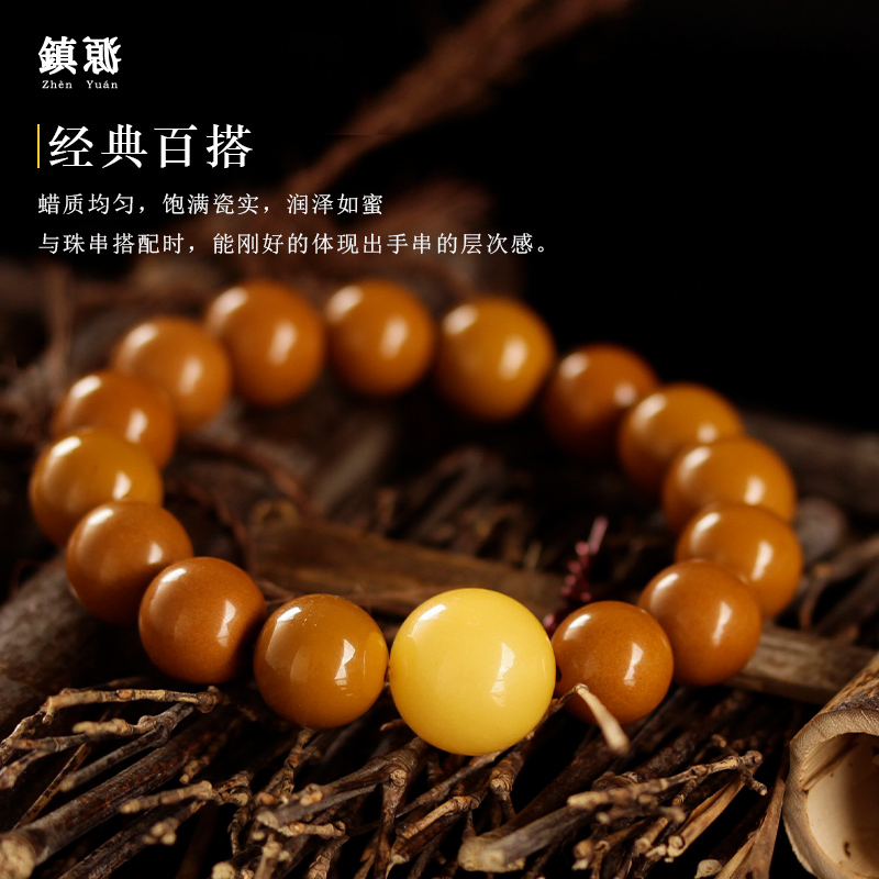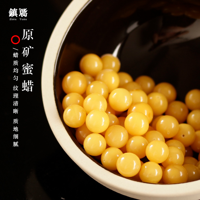 鸡油黄圆珠子手串配饰天然蜜蜡