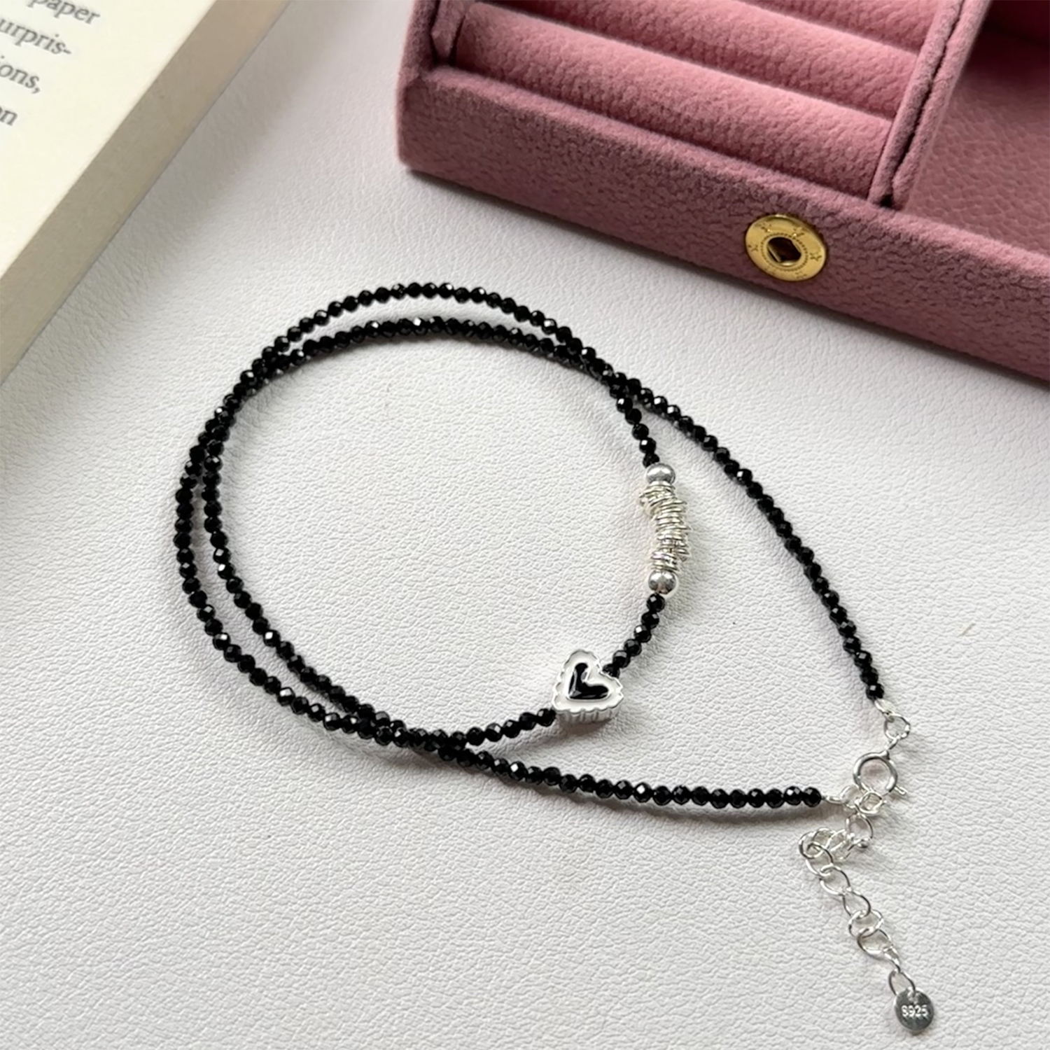 S925纯银黑尖晶碎银子爱心项链女轻奢小众2025新款叠戴锁骨链颈链