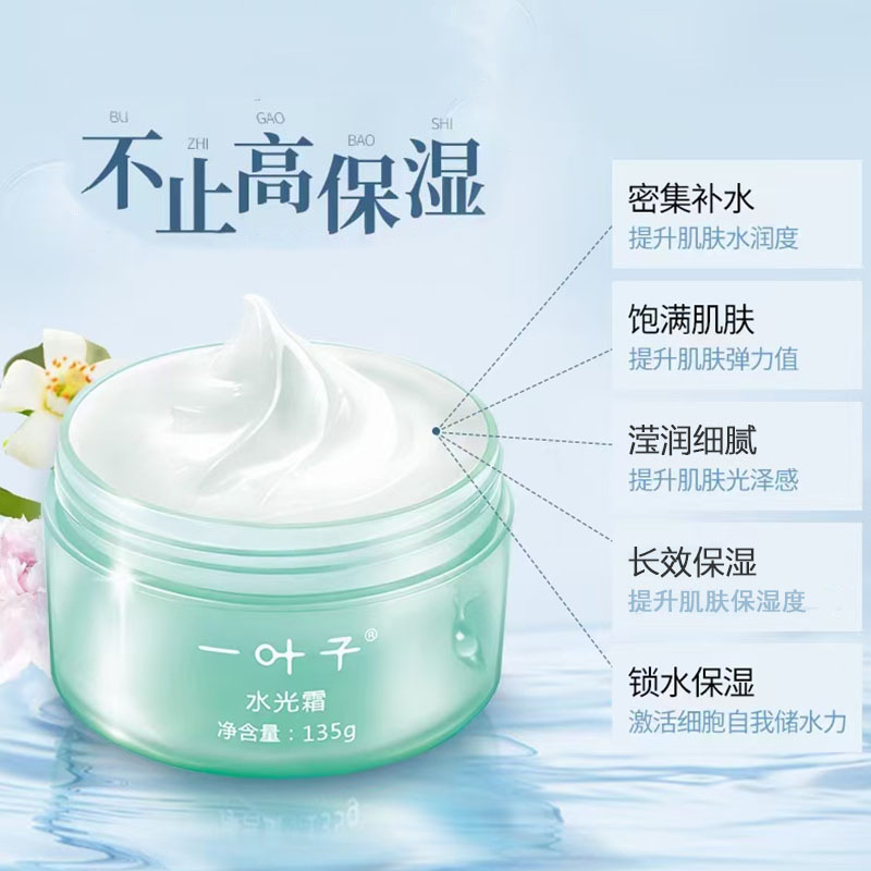 一叶子水光霜面霜女补水保湿改善干燥滋润嫩肤男女135克官方正品