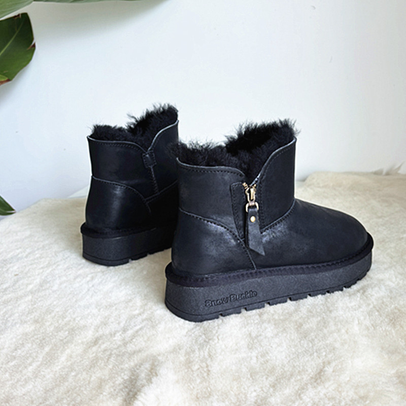 2025冬季皮面新款皮毛一体加厚雪地靴女防水防滑短筒东北厚底棉鞋