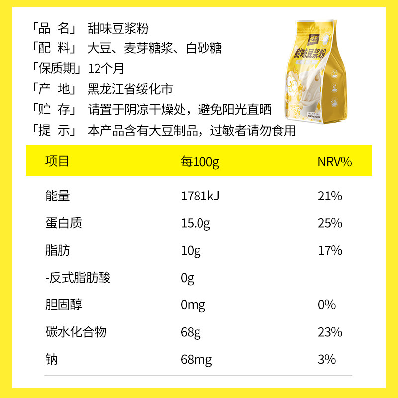 龙王甜味豆浆粉家庭装750g儿童学生高蛋白营养早餐代餐速溶冲饮