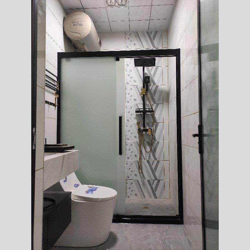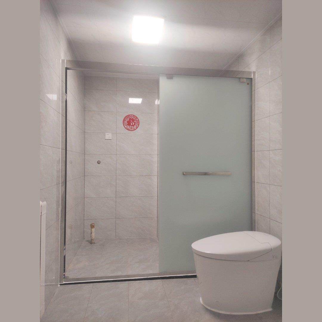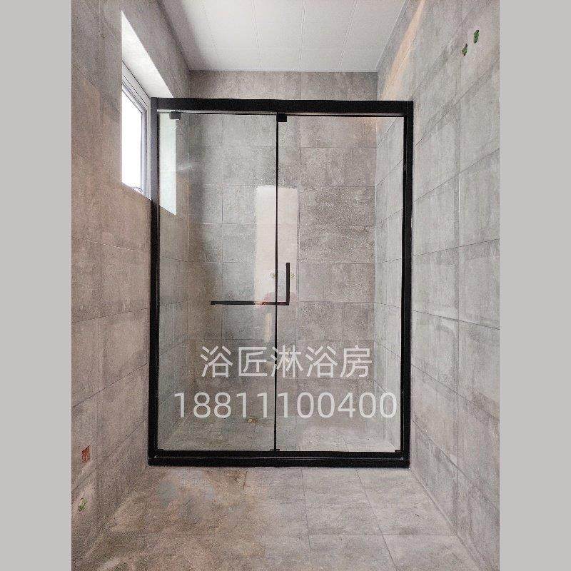 304不锈钢淋浴房一字隔断黑色钢化玻璃推拉移门屏风浴室干湿分离