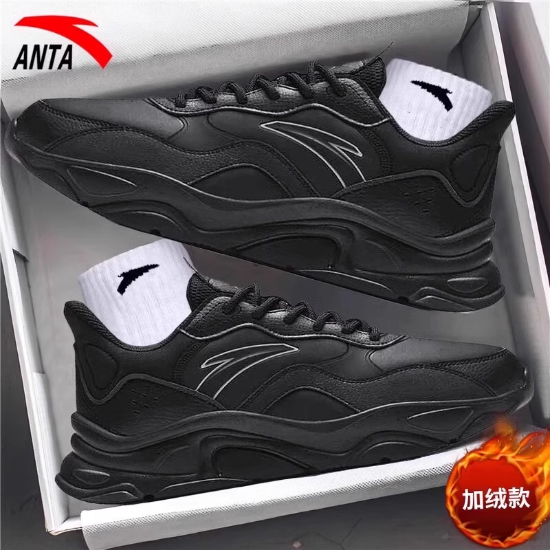 安踏男鞋小千禧老爹休闲鞋加绒2025新款秋冬男款皮面厚底运动鞋子