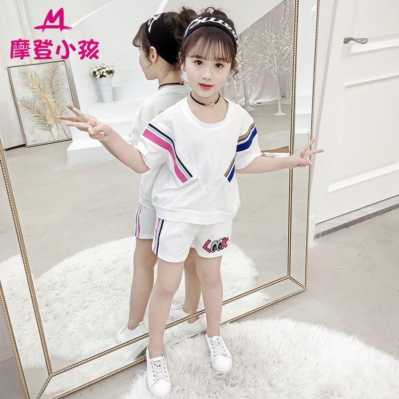 女童洋气套装2022新款夏装时尚潮童小童中大童休闲短袖短裤两件套