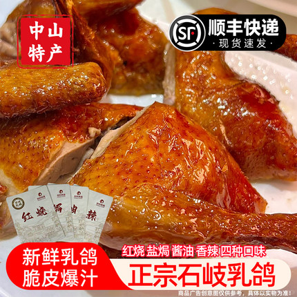 正宗中山石岐乳鸽红烧盐焗豉油皇香辣味脆皮乳鸽烤鸽子加热即食