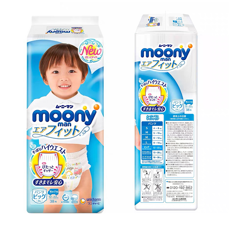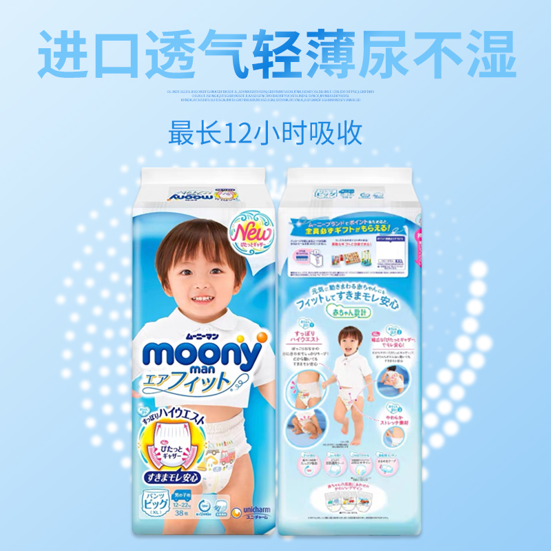 日本官方进口moony婴儿拉拉裤XL38片男宝宝裤型纸尿裤 尤妮佳正品