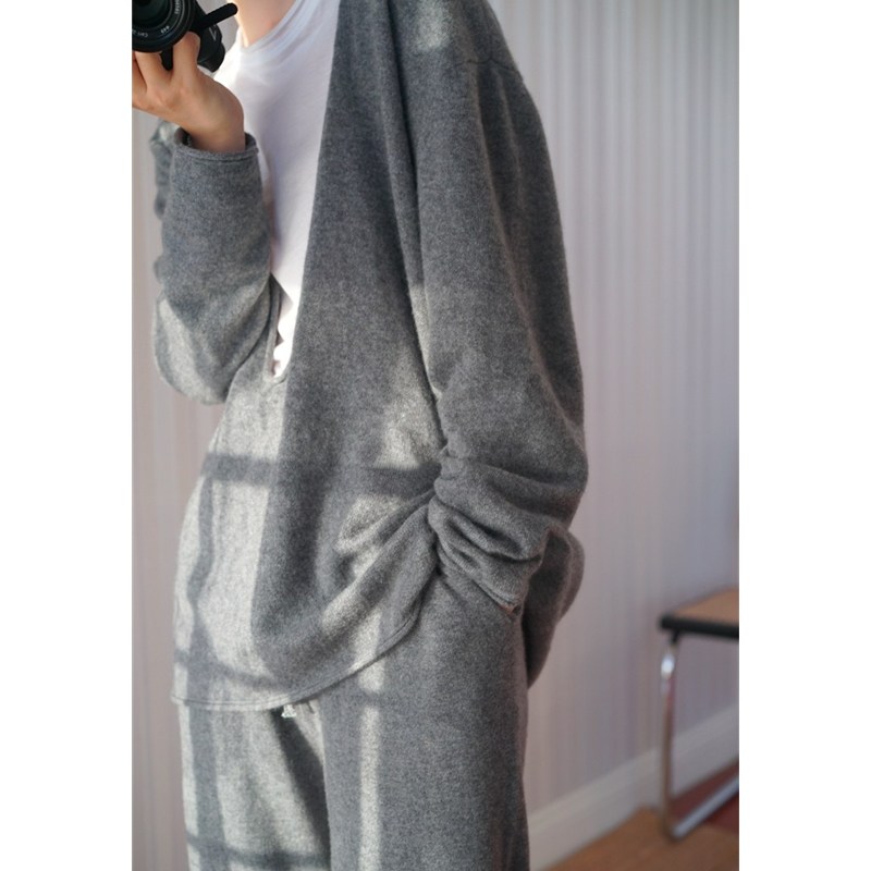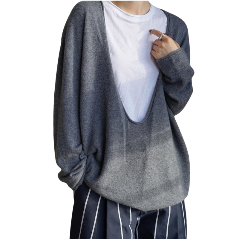 时髦慵懒卷边U型深V领山羊绒毛衣女秋冬套头叠穿外搭宽松针织衫薄