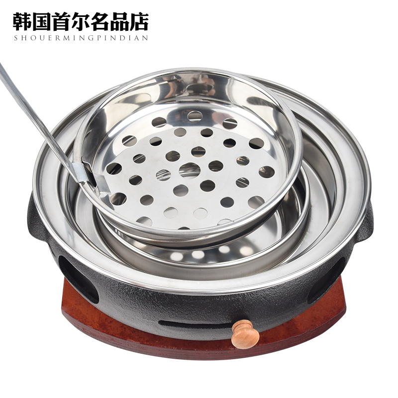 韩式碳烤炉商用加厚铸铁烧烤炉家用炭火烤肉炉户外围炉煮茶烤肉锅