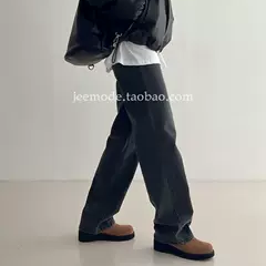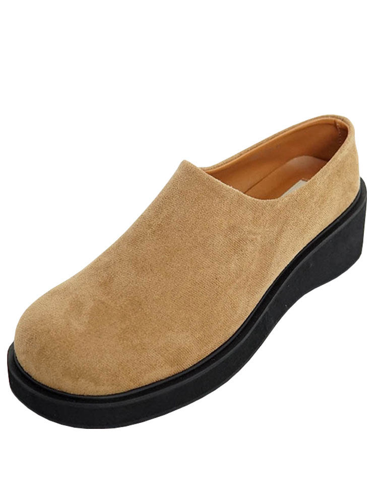 小池在首尔韩系大头女鞋2024年秋季圆头纯色中跟厚底绒面休闲单鞋
