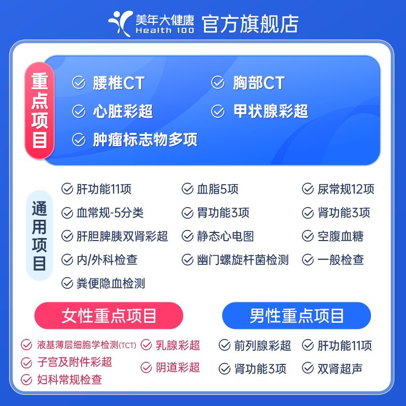【直播升级】美年大健康旗舰店成人全面精选172TMMN00体检套餐