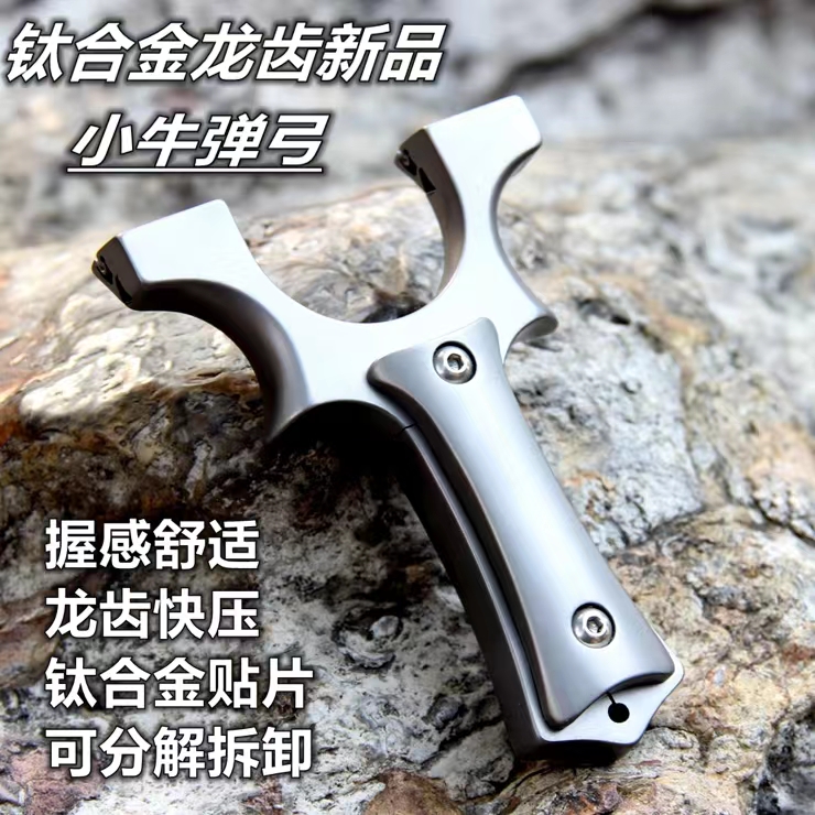 龙齿快夹钛合金暗扣小牛弹弓高精准扁皮弓业实战弹射大威力可拆卸