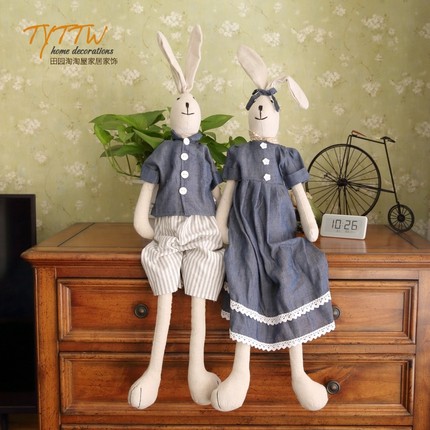 丹麦INS风可换装亚麻兔子布艺玩偶情侣摆件儿童房婚庆装饰送礼物