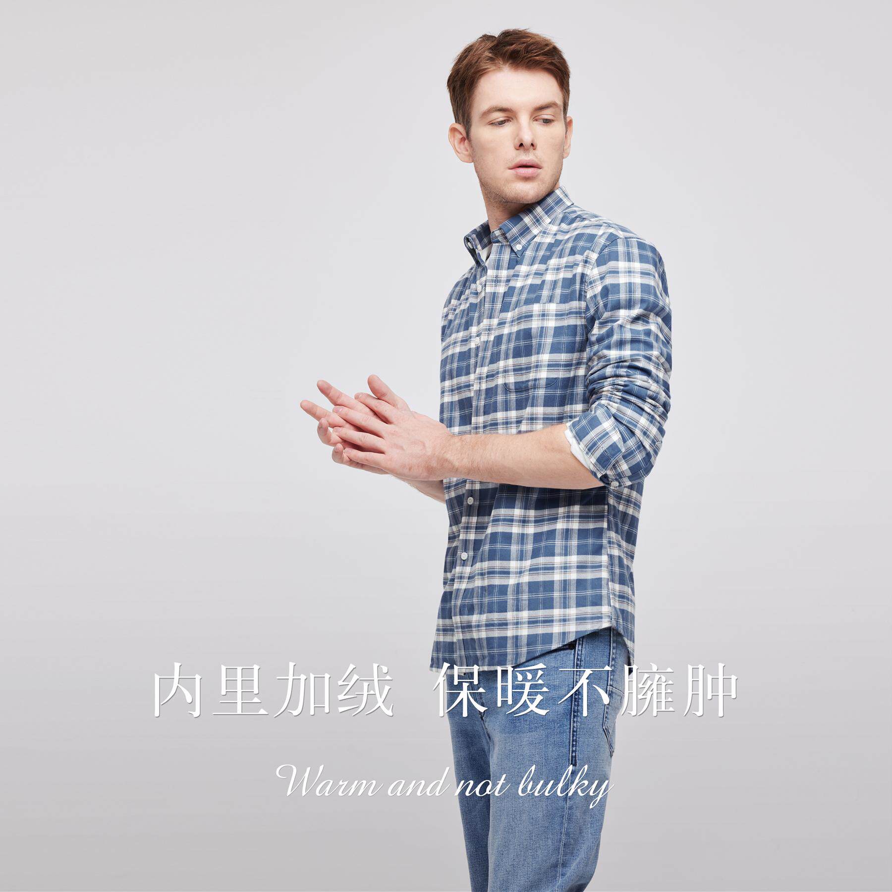 冬季加绒加厚保暖衬衫格纹商务休闲中年男士衬衣双层保暖上衣格子