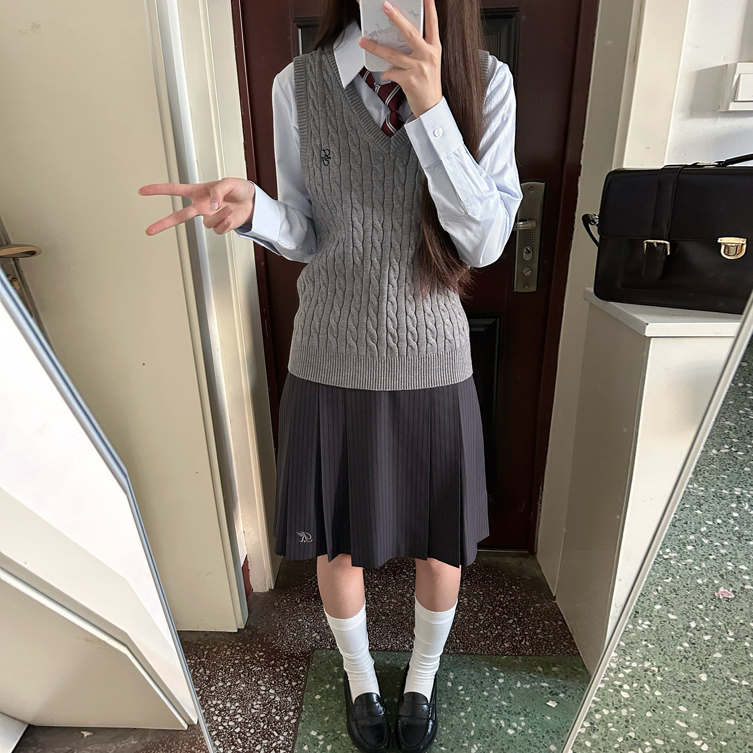 花千猪新品 月下弦格裙 jk制服校供感a字型刺绣款深灰格百搭jk裙