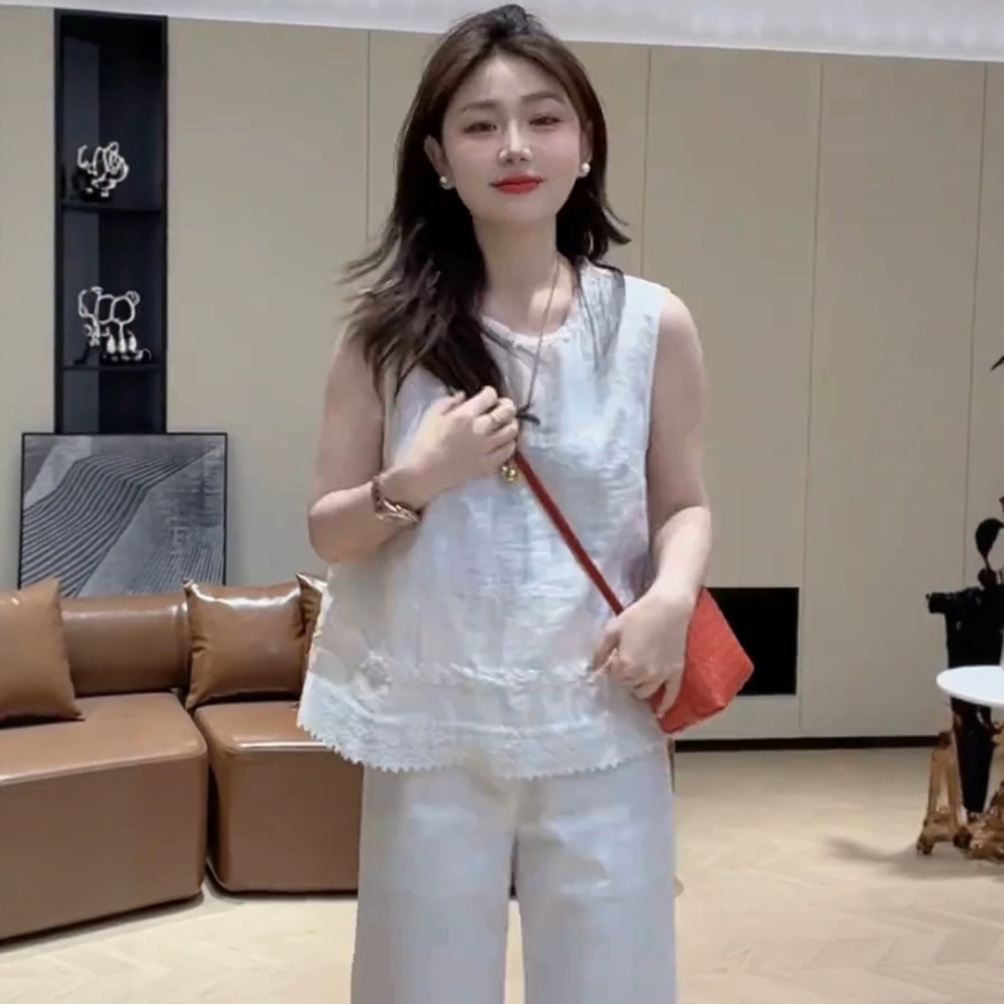 爆款流行超好看两件套女装无袖背心小衫+阔腿短裤时尚减龄套装