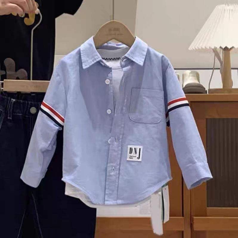 男童衬衫2024春季新款条纹百搭男孩子衬衫上衣春秋儿童衬衫潮
